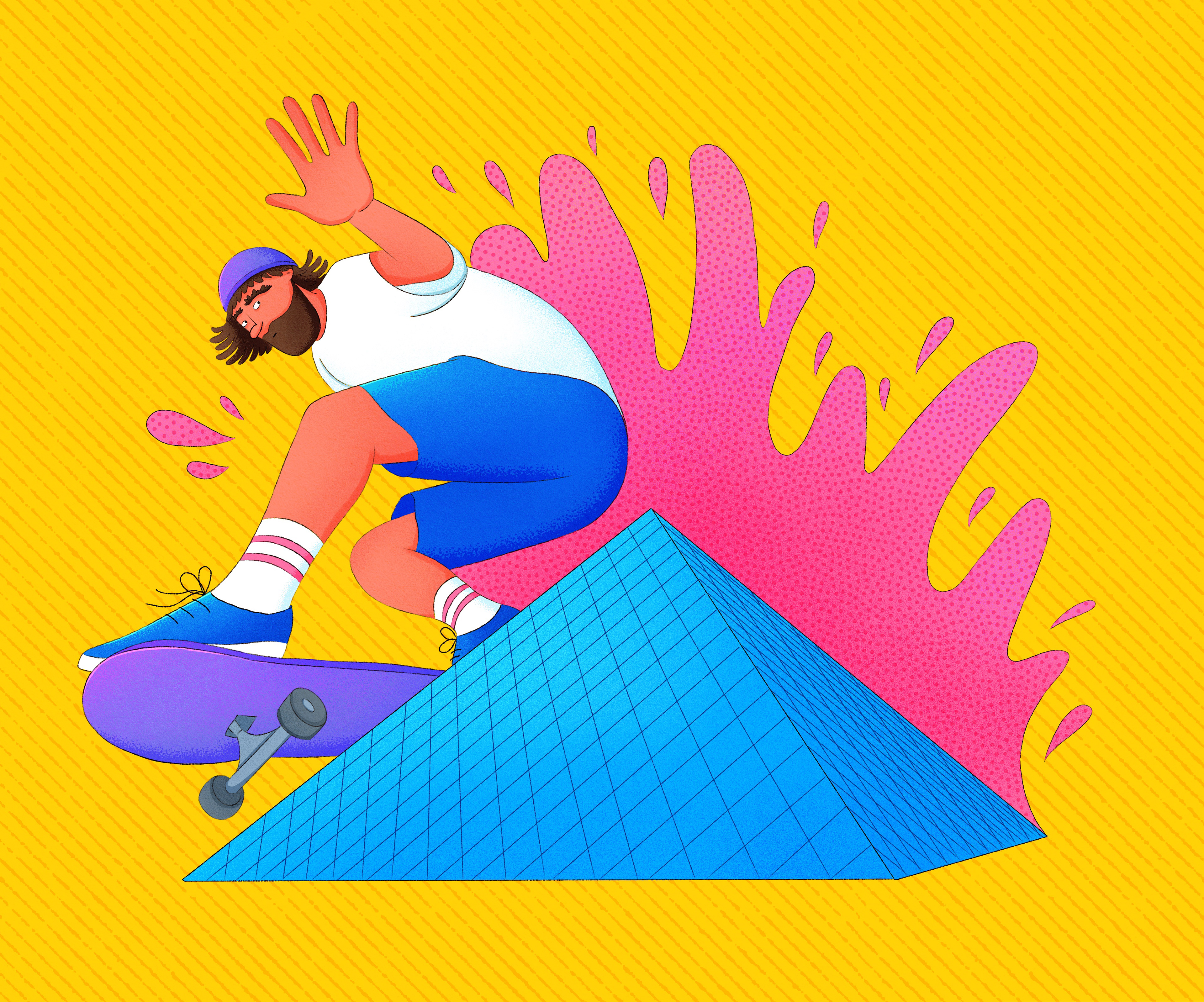 Created for Evonik, one of the largest German chemical companies, for their Folio magazine, this double-page illustration visualizes the four key phases of the scale-up process, from initial idea to industrial application. The brief required a clear depiction of each step, showing how laboratory tests evolve into stable and efficient manufacturing. The client wanted four distinct illustrations that feel separate, yet visually connected as one coherent system.